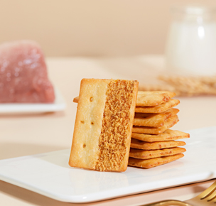 采用全自動(dòng)夾心生產(chǎn)線(xiàn),產(chǎn)能高損耗少;制作出的餅皮色澤金黃均勻,酥脆奶味醇香;自制研磨餡料絲滑咸香,咸甜爽口,多吃不膩。