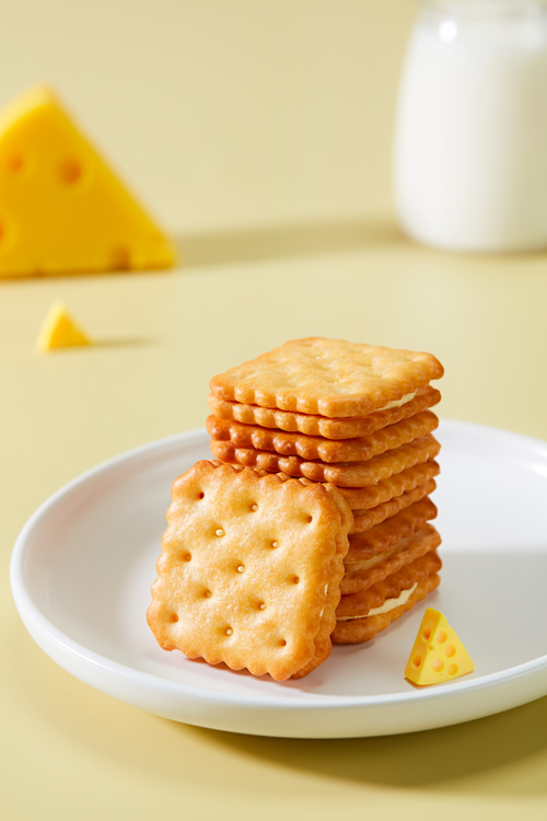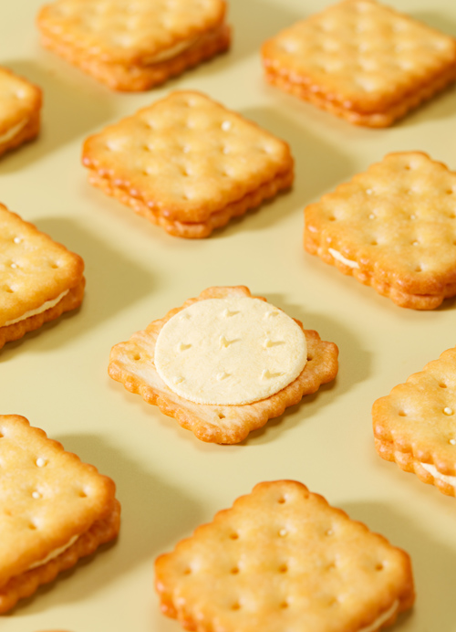 采用全自動夾心生產線,產能高損耗少;制作出的餅皮色澤金黃均勻,酥脆奶味醇香;自制研磨餡料絲滑咸香,咸甜爽口,多吃不膩。